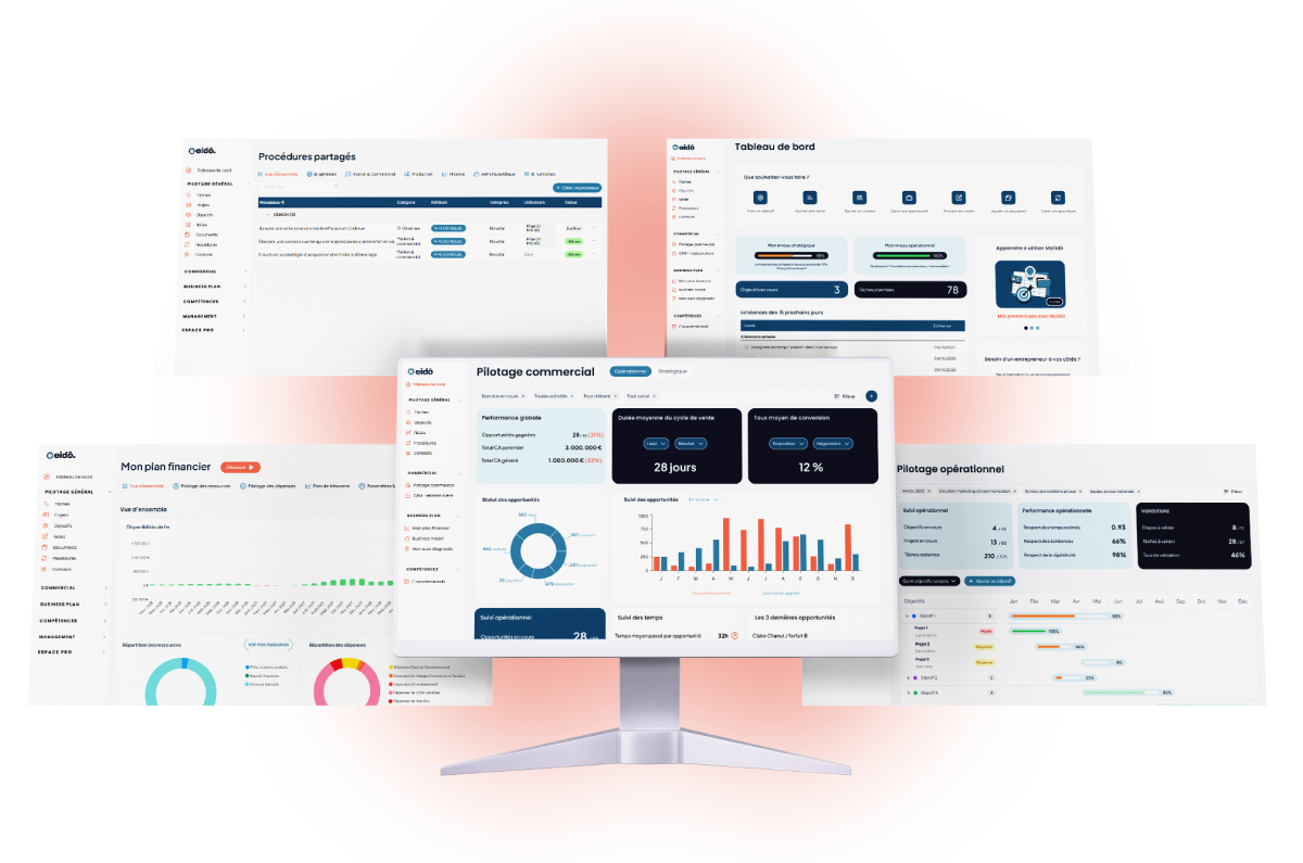 Eidō combine des formations en présentiel (format bootcamp) et le un logiciel innovant (MyEidō) pour structurer, piloter et faire évoluer votre projet d’entreprise.